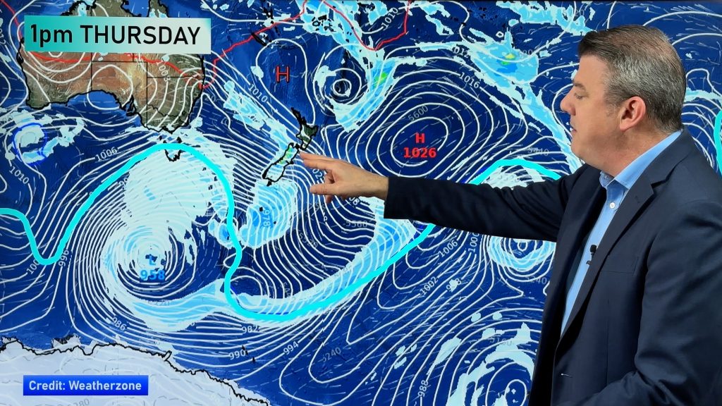 Rough weather is on the way this week as a big high to the east of New Zealand slows down a low and frontal system over the South Island bringing heavy rain and gales.