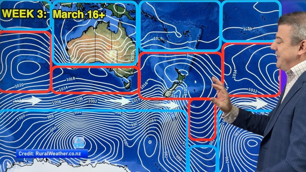 A lot of low pressure is spinning east of the country while a large high is moving in – this creates windy southerlies and south-easterlies in a number of regions today and into tomorrow (especially eastern parts of the North Island) with cloud and showers in the east easing over the next 24 hours.